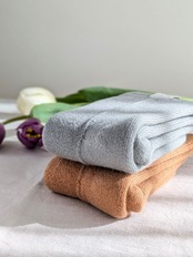 普段は省かれてしまうコットンの種の周りに付いている繊細な産毛を使った「再生繊維キュプラ」とコットンをブレンドし、有害物質を使わない優しい独自の特殊加工を施した素材。