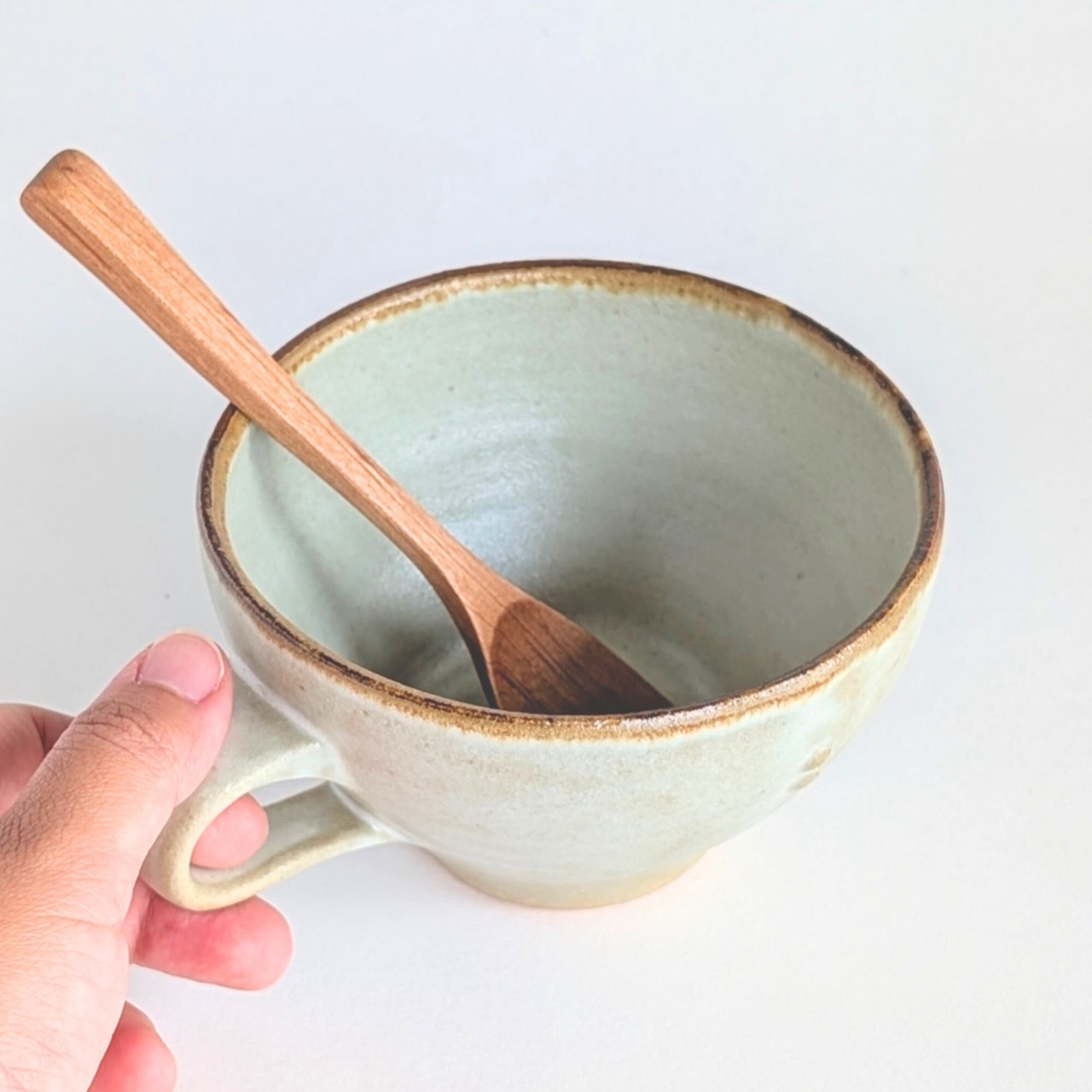 直接口を付けて飲むときも、口縁にかけてほんの少し内側にカーブしたディテールのおかげで、スープがゆっくり口元に運ばれていきます。