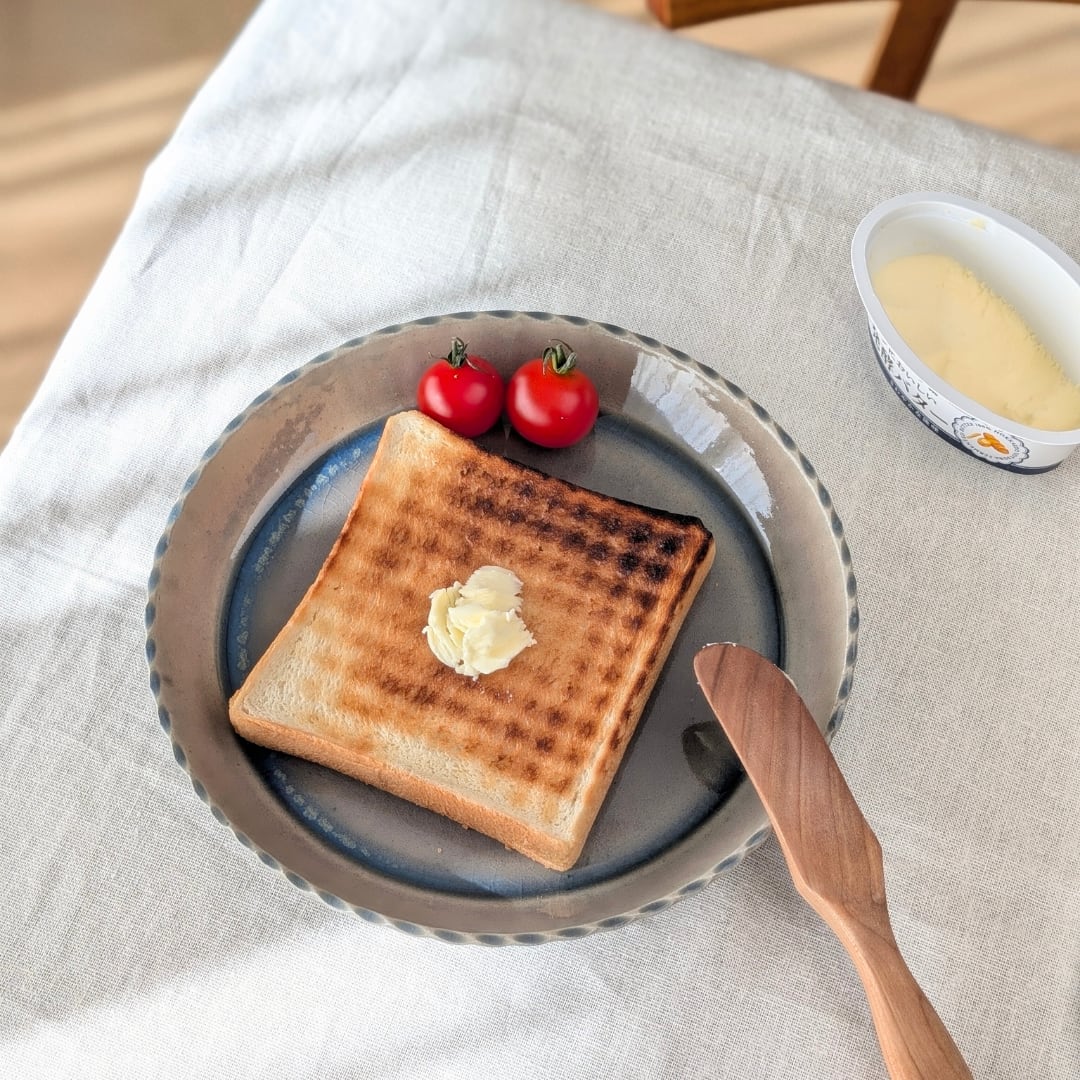 ブルーはトーストやパスタ、卵料理などの黄色い食材や、サラダ・焼き野菜・白身魚など鮮やかな色合いの食材ととても相性が良く、雰囲気もぐっと変わります。