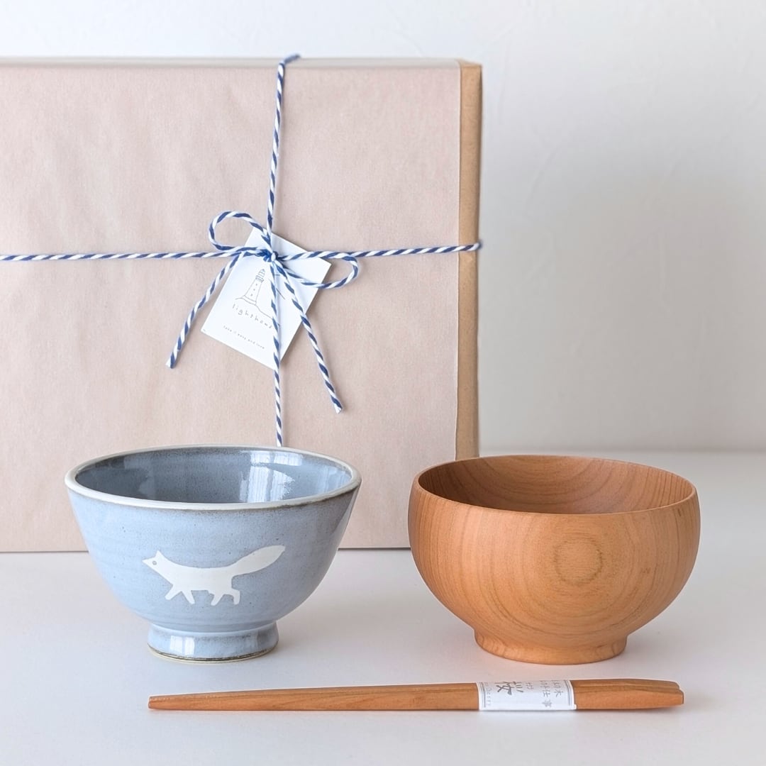 国産の素材を使い、作家と職人さんが作り上げた『お茶碗・お椀・お箸の』3点セットギフトです。
