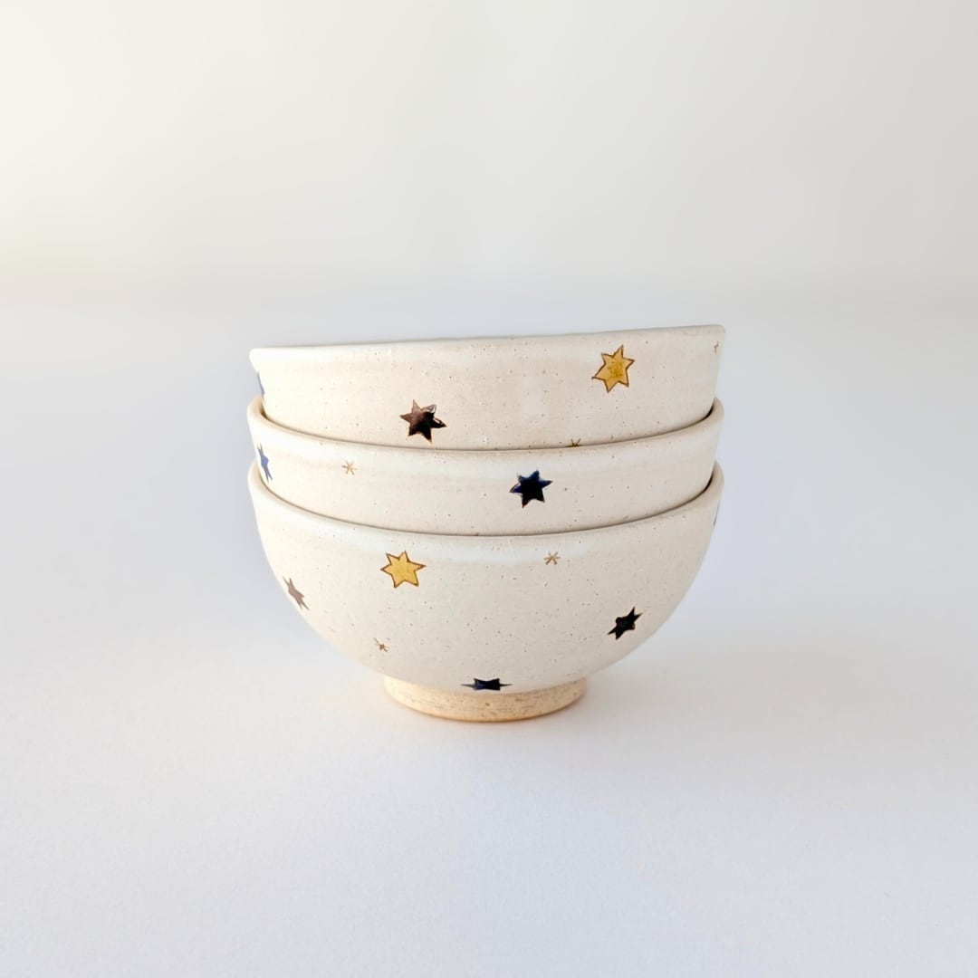 【3/6(金)20時販売開始】岡洋美 上絵星紋飯碗 中 |陶器 お茶碗