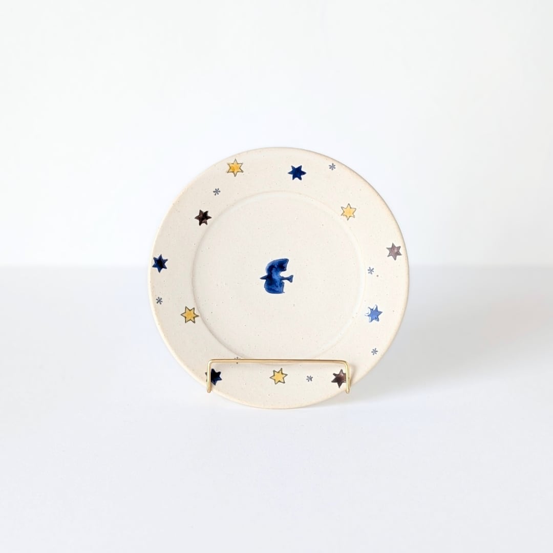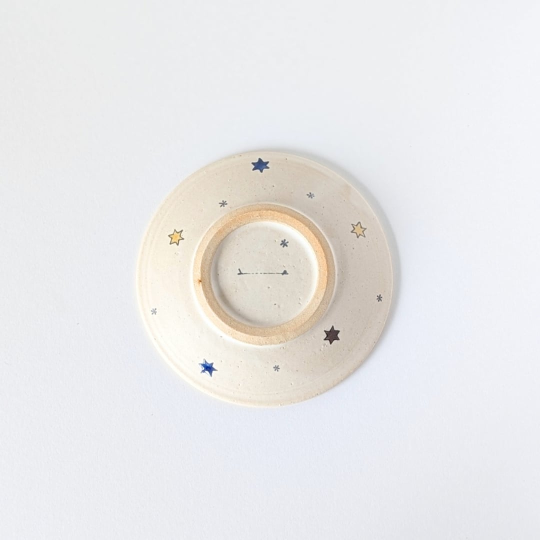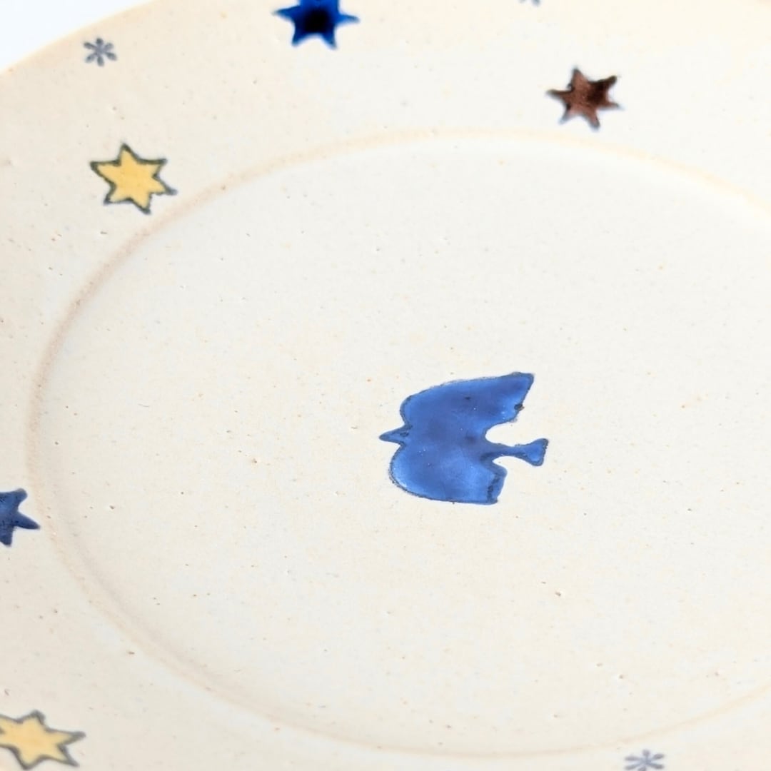 【3/6(金)20時販売開始】岡洋美 上絵鳥と星紋5寸皿 |陶器 プレート 15㎝ とり