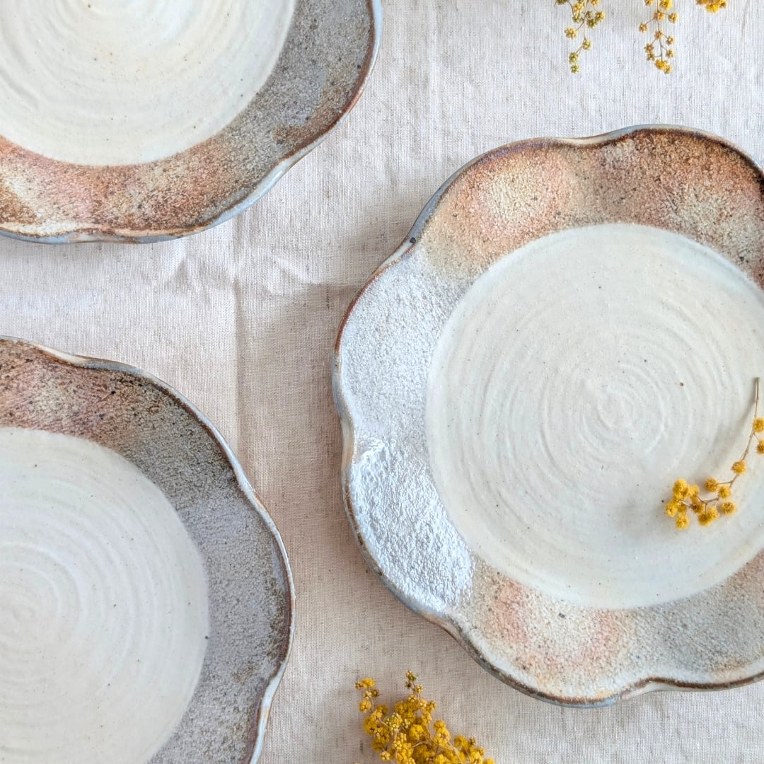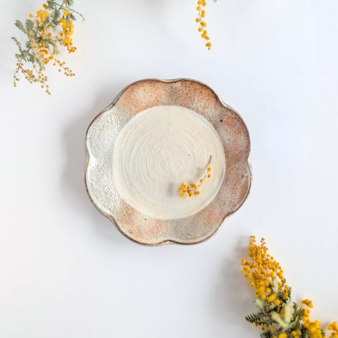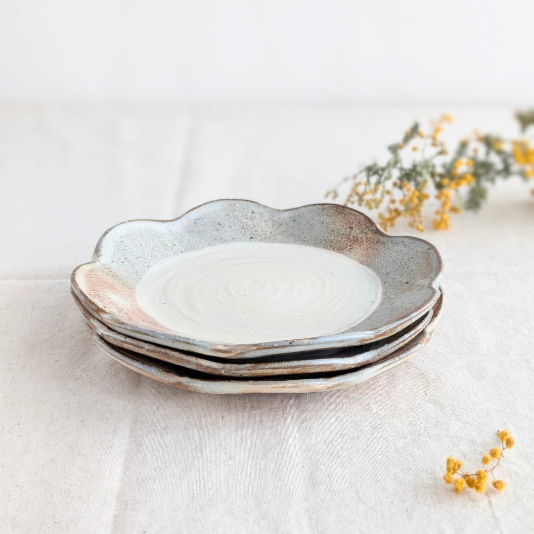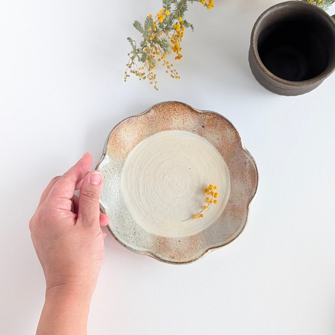 【4/10㈮21時販売開始】古谷製陶所 渕荒粉引 輪花皿 小 |陶器 作家 プレート 母の日