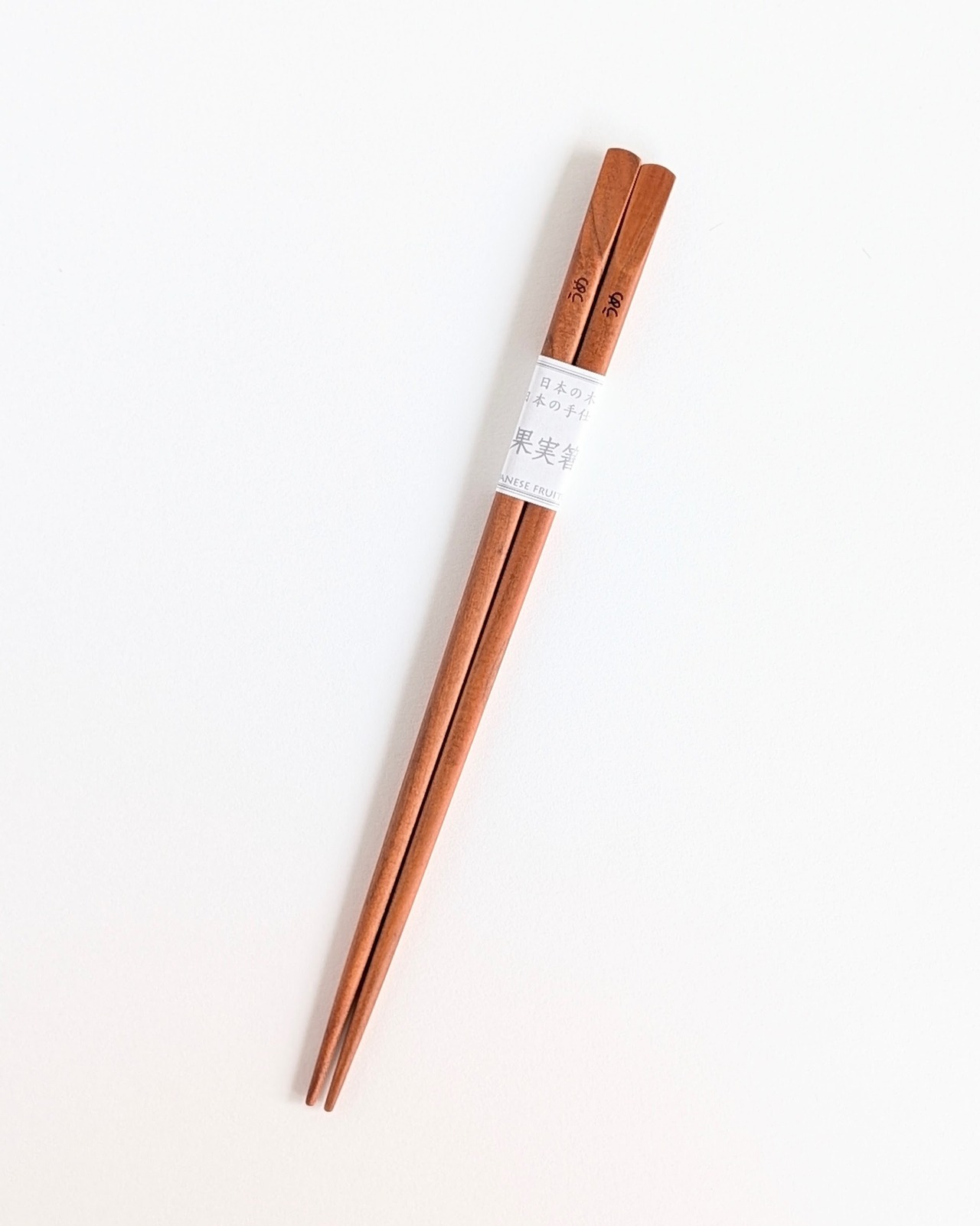 端に書かれた木の名前の文字が、まるでお箸がちょっと得意げに自己紹介をしているような、なんとかわいいお箸。