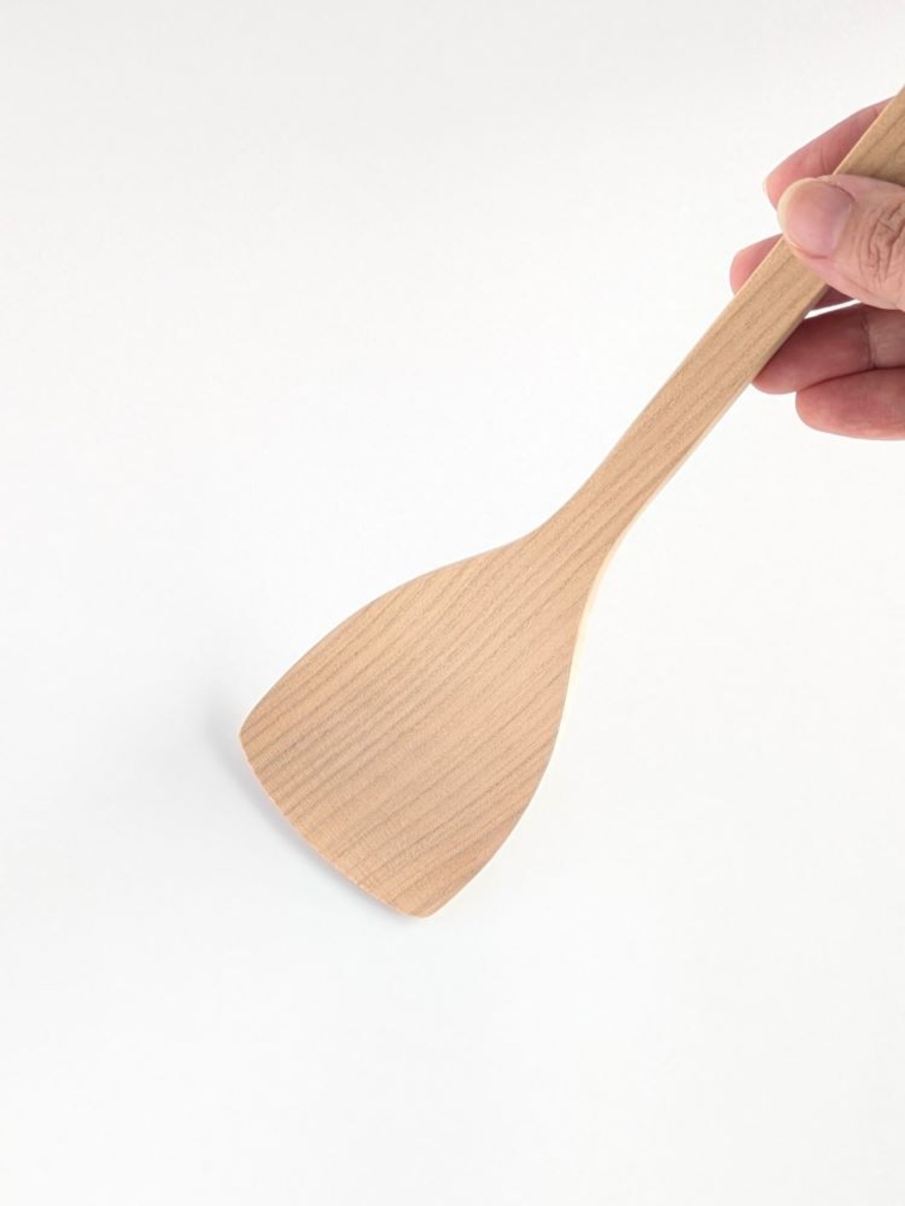 代表的な物産である「宮島杓子」を今に伝え、さらに多くの日用品を作り上げている「宮島工芸製作所」さんの「イチョウ型へら」のご紹介です。