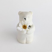 短い手足をきゅっとよせて、お花を抱えるかっこうのしろくまさん。ちいさなお目目ときゅっとすぼんた口元がたまらない可愛さです…!