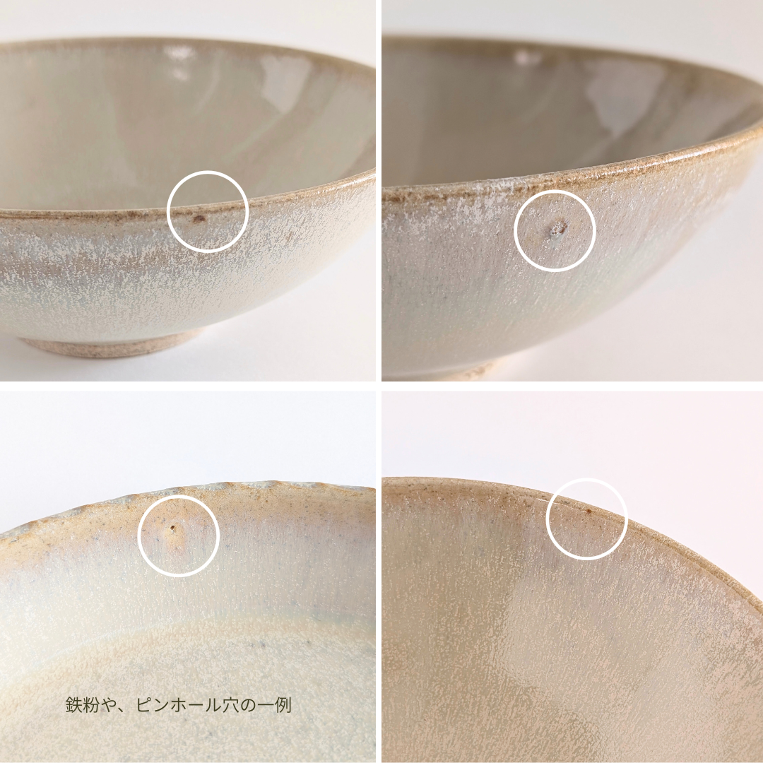 これらは不良ではなく、手仕事ならではの特徴としてご理解ください。一点ごとに異なる表情を持つ器として、お楽しみいただけましたら幸いです。