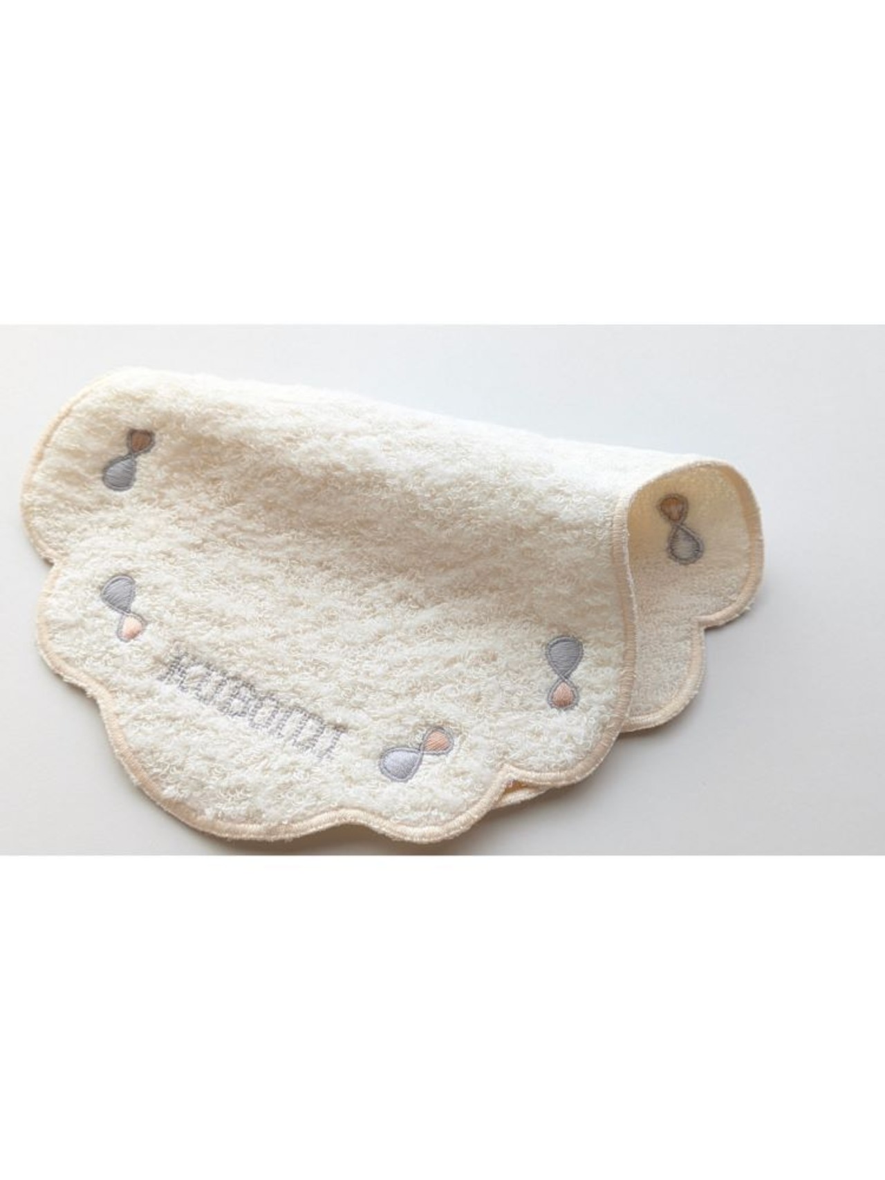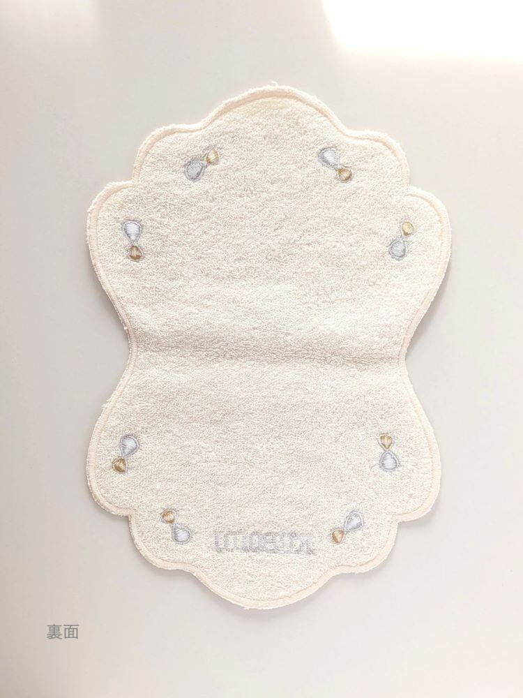 kubomiさんの「オーガニック刺繍タオル・汗取りパット」は貝殻の形をモチーフにした優しいシルエットの刺繍タオルです。