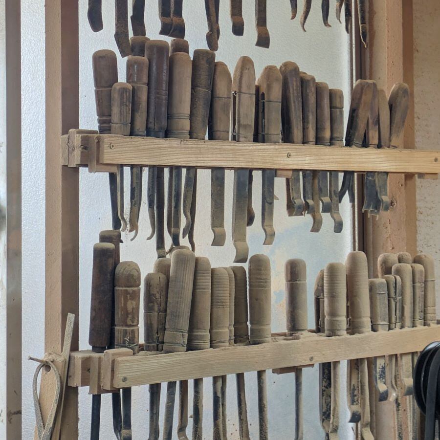 そこで職人さんたちのが自ら鍛えた刃物で、経験と勘を頼りにこの丸みのある形に削り出しているのです。