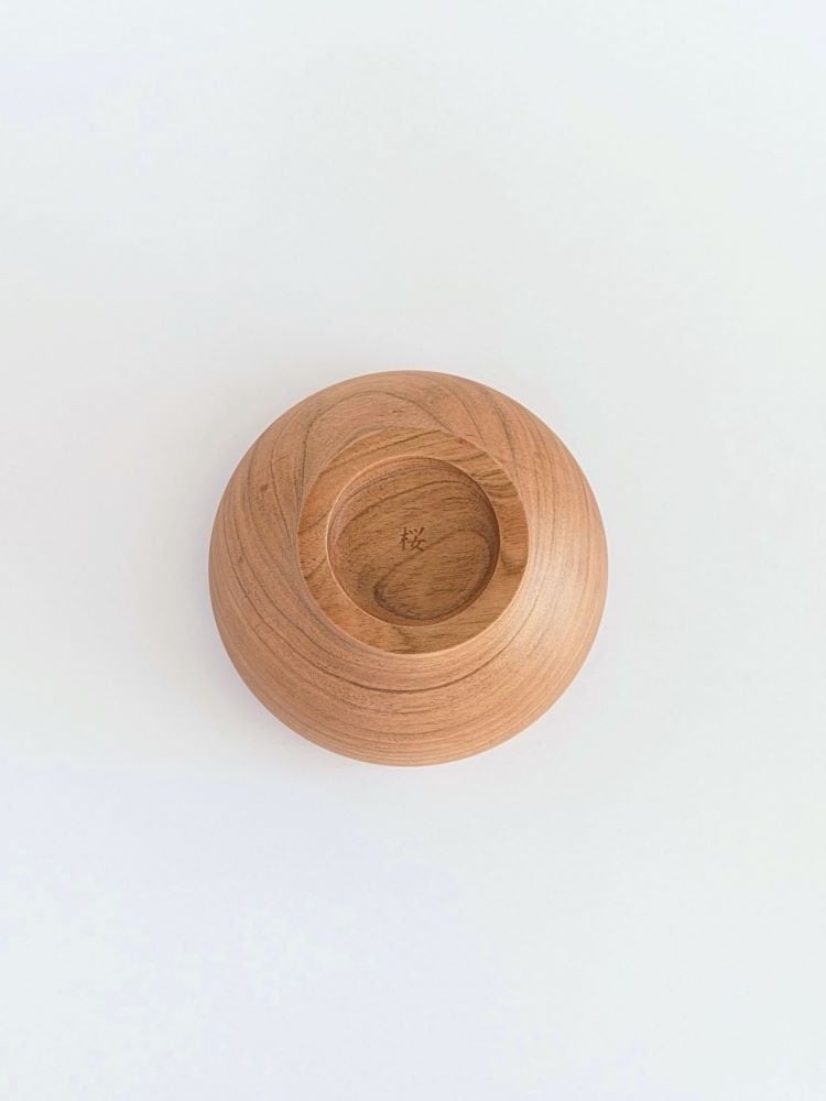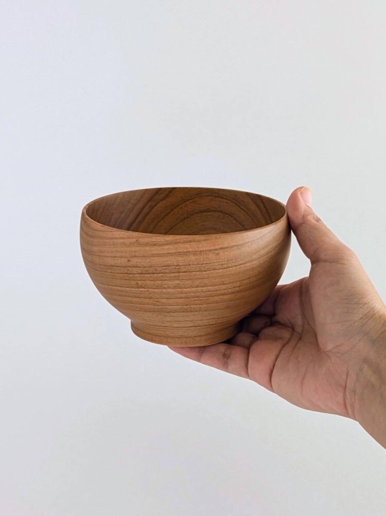 底面に向かってまあるい曲線を描く、天然木のお椀。
