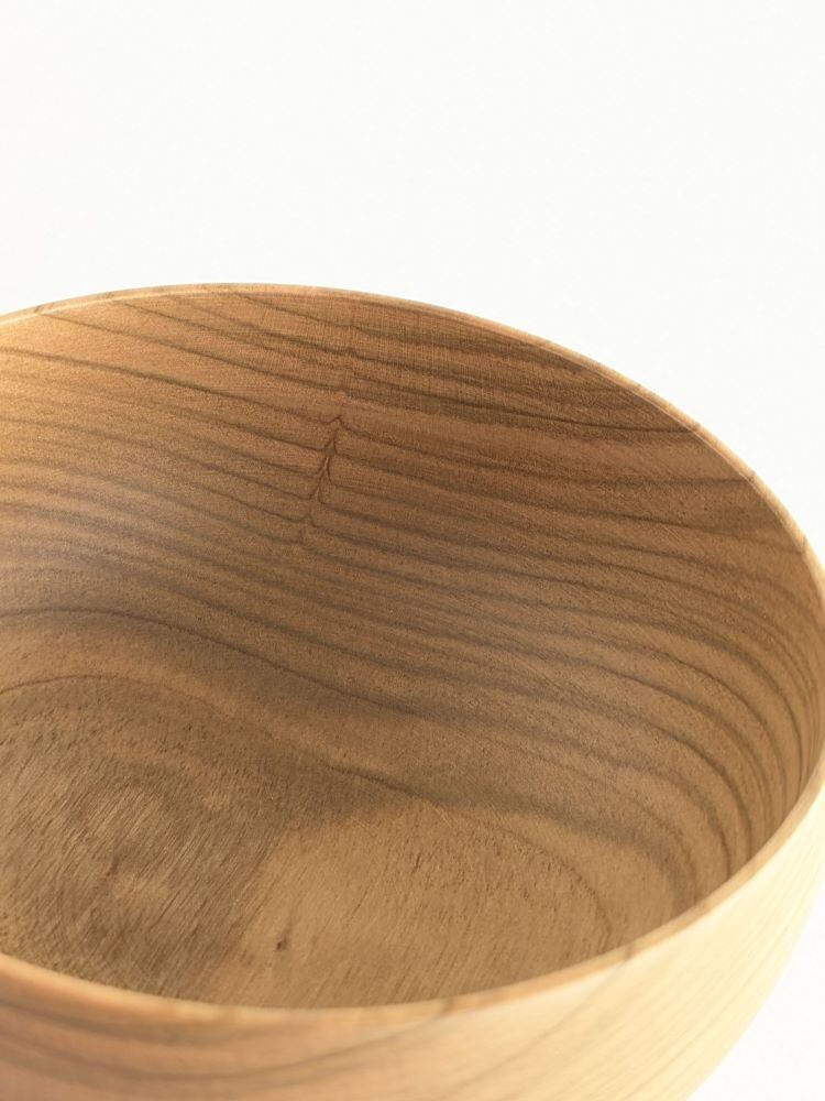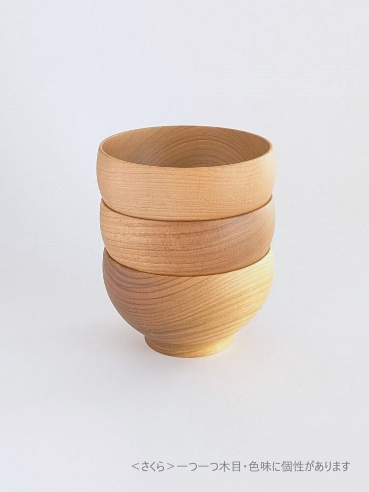 日本の銘木が持つ木目と色味を活かすため、無色透明のウレタン塗装だけで仕上げためいぼく椀。